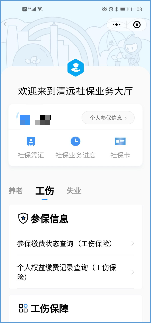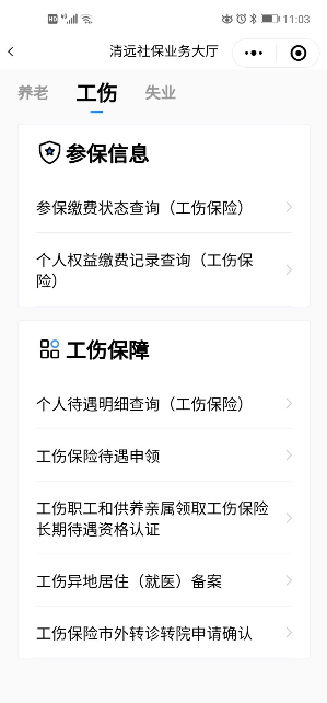 ③進入清遠社保業務大廳后,選擇“工傷”