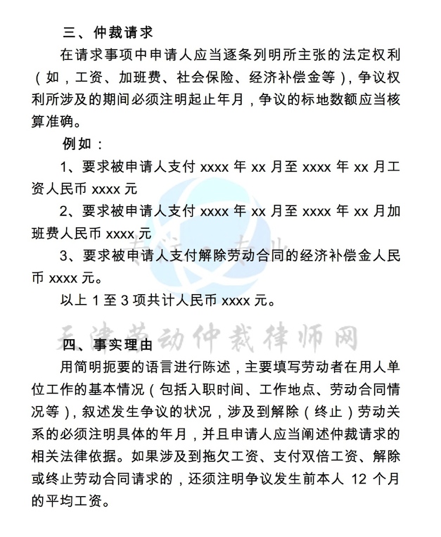 對于被申請人可能提出的這三種抗辯意見,作為申請人一方,都應當做好充分的準備,提前找到應對之策。而這些準備工作只能是私下進行,無需也不應在《申請書》中有任何體現,只要概述“被申請人無故將申請人辭退”也就足夠了。之后,就由被申請人來解釋到底是不是其將申請人辭退,或者論證其辭退申請人是否合法吧!