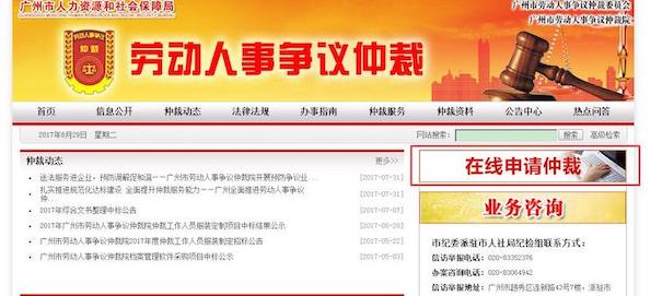 市勞動人事爭議仲裁院網上申請仲裁業務已完成建設,8月1日起該業務將對外開通,具體登錄方式如下。登錄廣州市勞動人事爭議仲裁院網站,點擊“在線申請仲裁”。