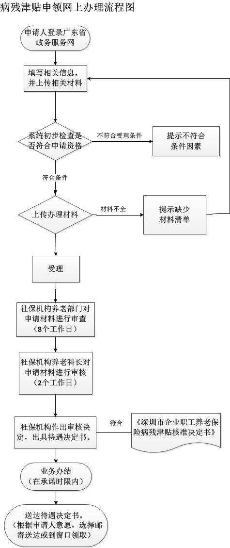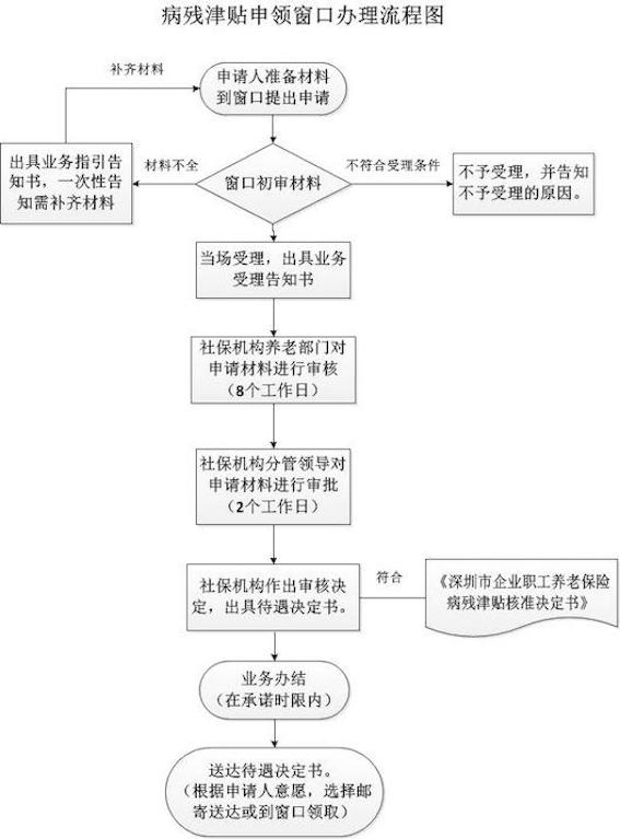 5.辦結:審批通過的,社保經辦機構出具《深圳市企業職工養老保險病殘津貼核準決定書》;