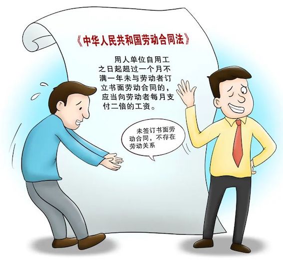 《中華人民共和國勞動合同法》第八十二條規定,用人單位自用工之日起超過一個月不滿一年未與勞動者訂立書面勞動合同的,應當向勞動者每月支付二倍的工資。