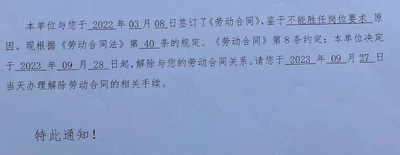 2022年3月7日,李四在深圳時尚科技公司處入職,擔任銷售總監一職。2023年9月份,因深圳時尚科技公司想要裁員,后在其與李四就工資發放及補償事宜未能協商一致的情況下,深圳時尚科技公司向李四發出了《解除<勞動合同>通知書》,載明:“……鑒于不能勝任崗位要求原因?,F根據《勞動合同法》第40條的規定、《勞動合同》第8條約定;本單位決定于2023年9月28日起,解除與您的勞動合同關系?!?/span>