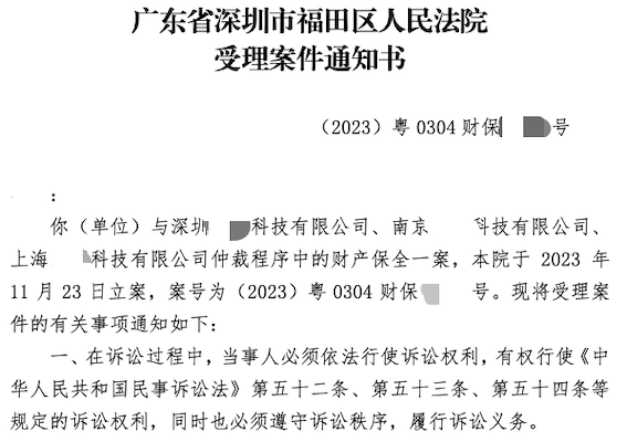 在福田勞動仲裁委于2023年10月23日受理了仲裁申請后,我們隨即向深圳市福田區人民法院遞交材料申請財產保全,請求查封被申請人名下價值25萬元的財產。