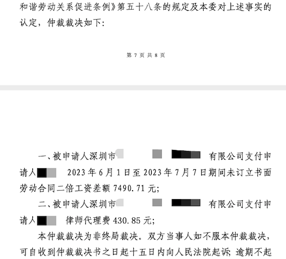 深圳勞動律師所代理企業仲裁,駁回二倍工資和賠償金請求成功案例